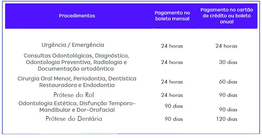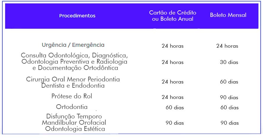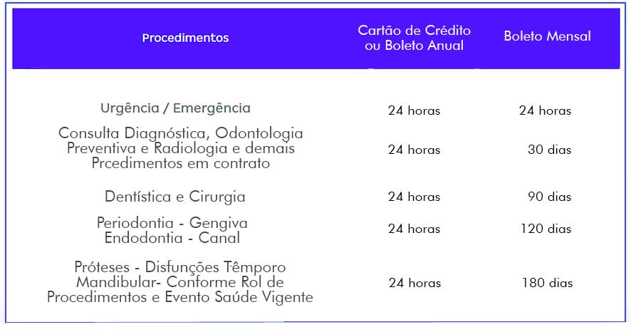 Efetuando o pagamento de seu plano através de boleto anual, ou cartão de crédito, a carência é de apenas 24 horas em todos os procedimentos.